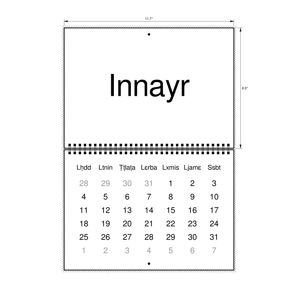 • Tashelhit heritage speakers and cultural connectors - For individuals seeking to maintain a connection to their history, ancestral roots, or the culture associated with the Tashelhit language, the calendar serves as a daily cultural marker. Use it in your home, office, library, or museum as a link to linguistic and cultural identity that integrates Tashelhit into your everyday life. Familiar language script and naming conventions may also provide a sense of home in a foreign environment.