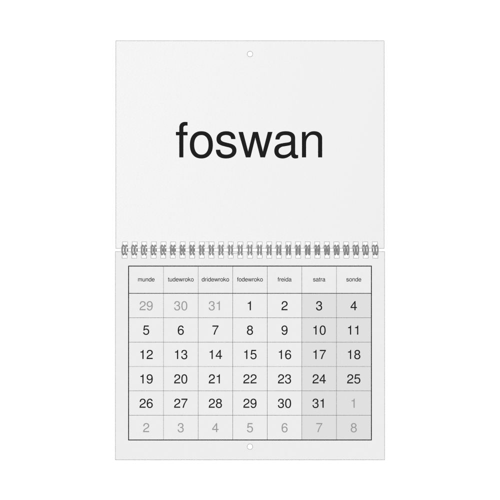 - Linguistics enthusiasts and polyglots - For "language geeks" interested in comparative linguistics or the mechanics of different languages and who value the aesthetic differences in scripts, orthography, and typography of different languages, the Sranan Tongo calendar serves as an object of intellectual interest. You can collect calendars for various languages to compare their linguistic roots (e.g., comparing Romance languages vs. Slavic languages). Leskoff's calendars are characterized by specific typographic choices that highlight the orthography and script unique to the target language. Think correct usage of diacritics, characters, and directional writing (left-to-right vs. right-to-left). The minimalist design focuses on legibility and aesthetic appeal of the script itself.