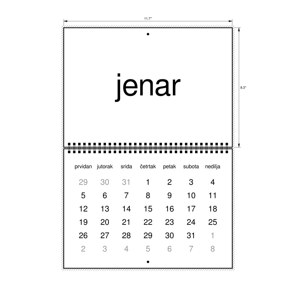 This calendar features the Slavomolisano names of months and days of the week on top of a standard Gregorian calendar layout. Beyond its utility for tracking dates, it serves as an educational tool, cultural touchstone (cultural artifact), and functional decor (aesthetic object).