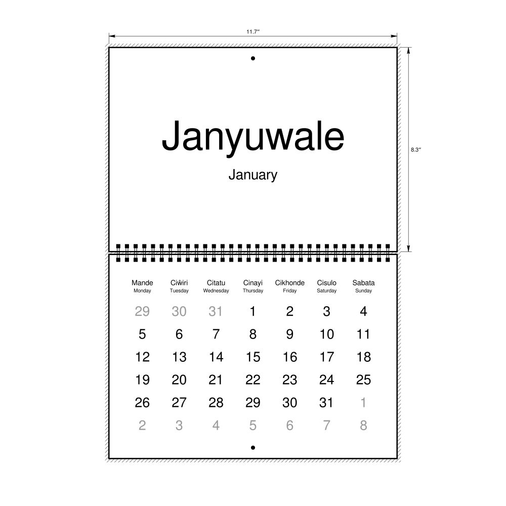 2026 Wall CalendarTumbuka/English-Labeled, Monday-Start Layout, Wire-Bound, 11.7 x 8.3 in (29.7 x 21.0 cm)