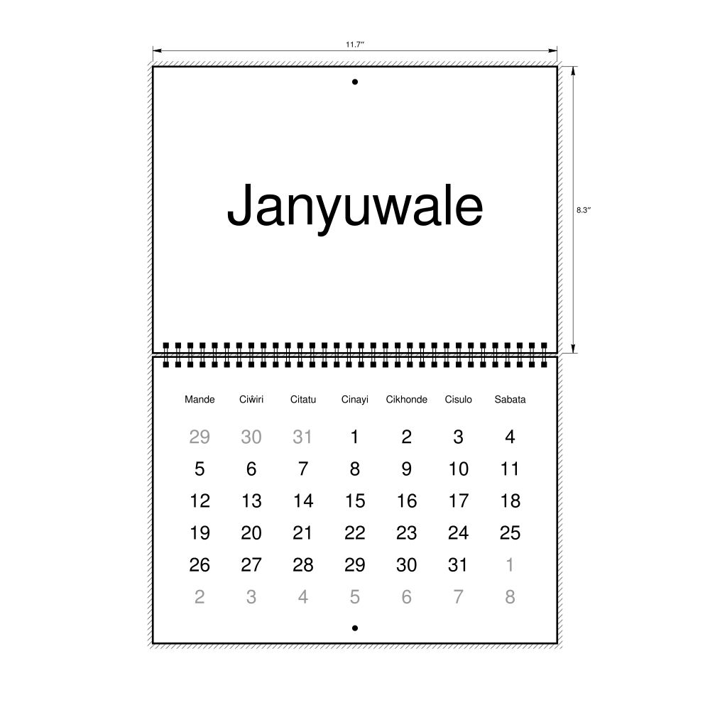 • Tumbuka heritage speakers and cultural connectors - For individuals seeking to maintain a connection to their history, ancestral roots, or the culture associated with the Tumbuka language, the calendar serves as a daily cultural marker. Use it in your home, office, library, or museum as a link to linguistic and cultural identity that integrates Tumbuka into your everyday life. Familiar language script and naming conventions may also provide a sense of home in a foreign environment.