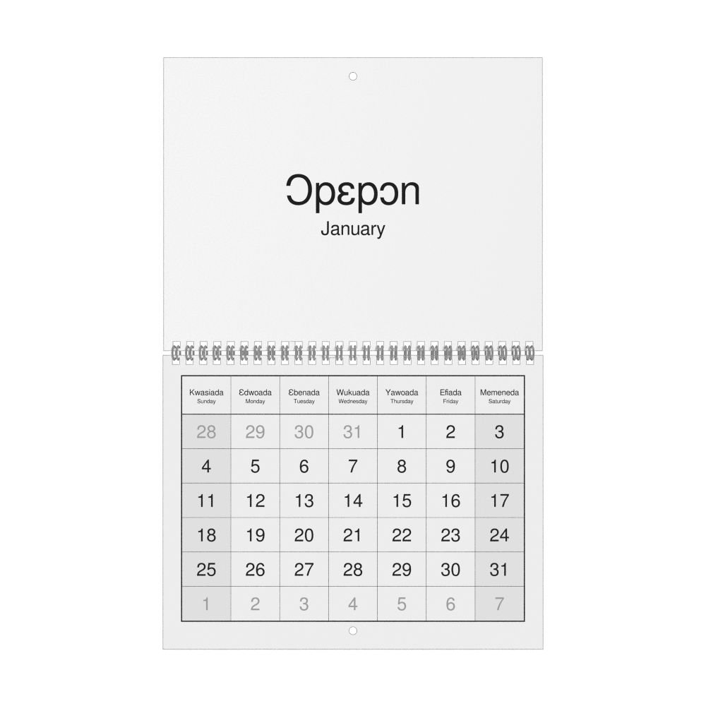 A Twi-language wall calendar (2026, Sunday-start format) with English translations.