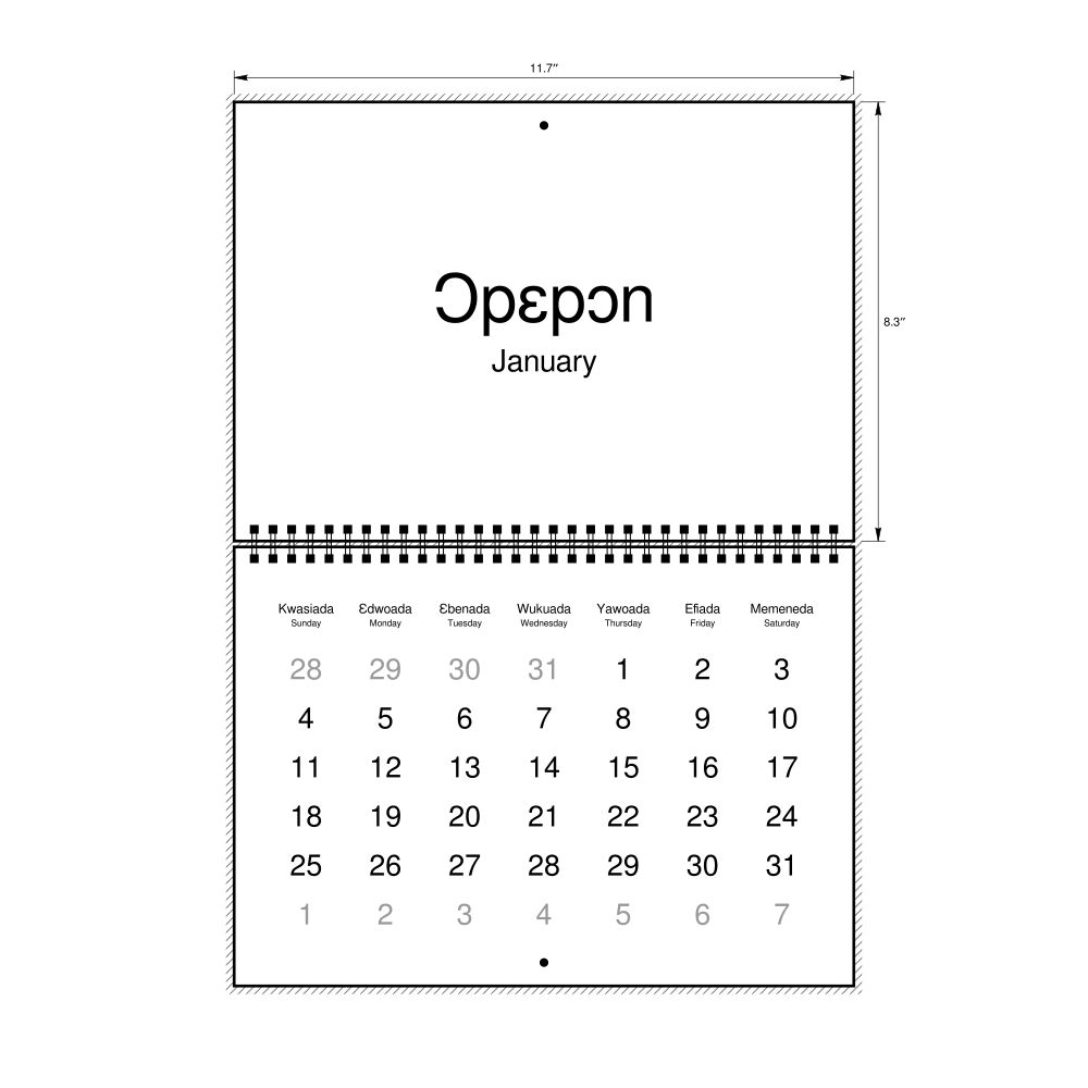 2027 Wall Calendar, Twi/English-Labeled, Sunday-Start Layout, Wire-Bound, 11.7 x 8.3 in (29.7 x 21.0 cm)
