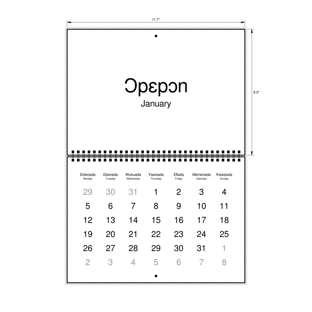 A Twi-language wall calendar (2026, Monday-start format) with English translations.