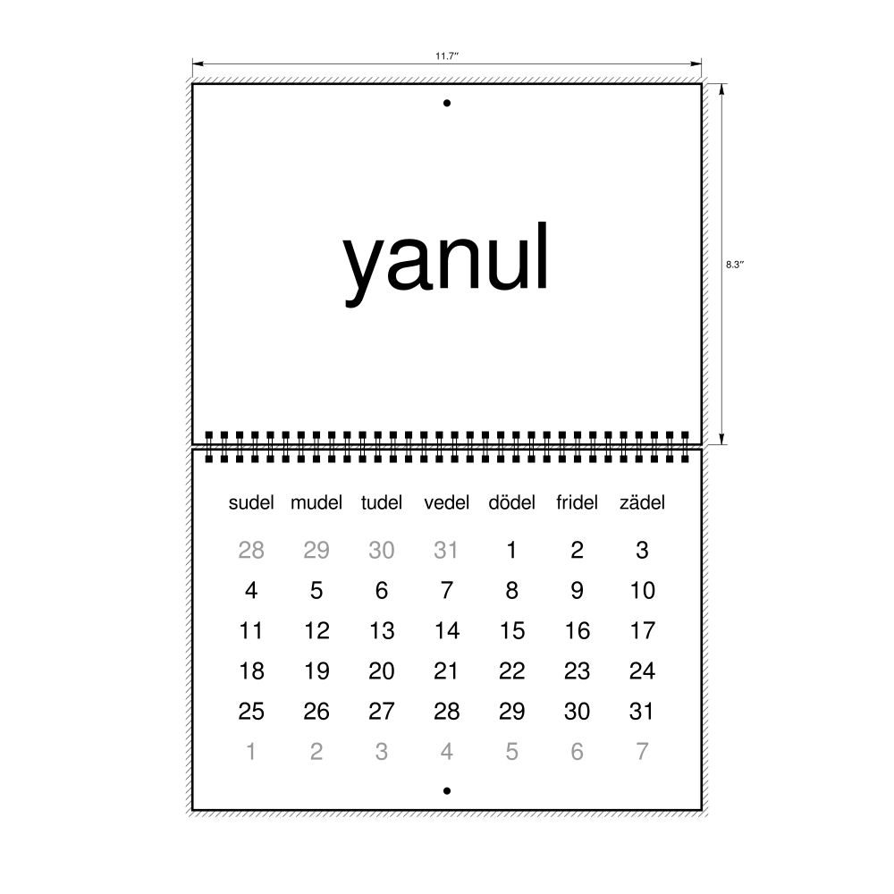 2027 Wall Calendar, Volapük/English-Labeled, Monday-Start Layout, Wire-Bound, 11.7 x 8.3 in (29.7 x 21.0 cm)