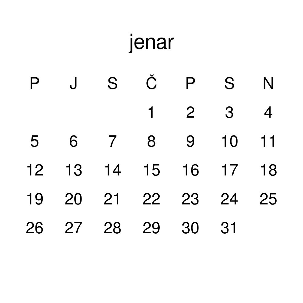 This calendar features the Slavomolisano names of months and days of the week on top of a standard Gregorian calendar layout. Beyond its utility for tracking dates, it serves as an educational tool, cultural touchstone (cultural artifact), and functional decor (aesthetic object).