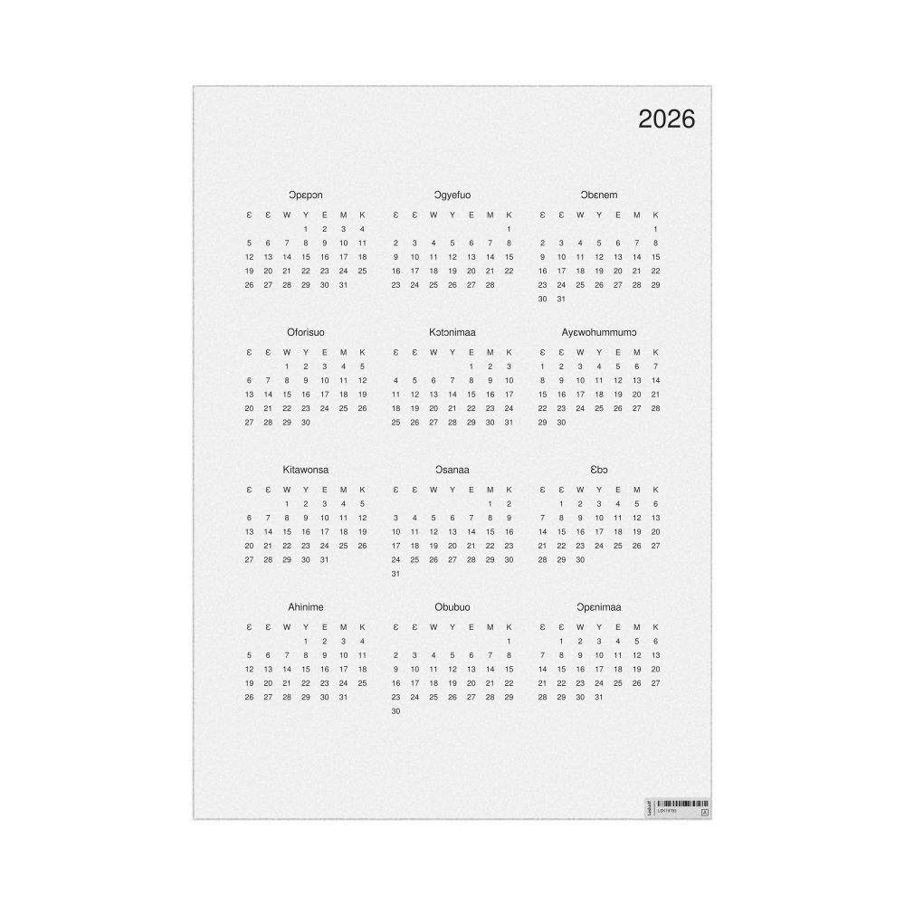 - Linguistics enthusiasts and polyglots - For "language geeks" interested in comparative linguistics or the mechanics of different languages and who value the aesthetic differences in scripts, orthography, and typography of different languages, the Twi calendar serves as an object of intellectual interest. You can collect calendars for various languages to compare their linguistic roots (e.g., comparing Romance languages vs. Slavic languages). Leskoff's calendars are characterized by specific typographic choices that highlight the orthography and script unique to the target language. Think correct usage of diacritics, characters, and directional writing (left-to-right vs. right-to-left). The minimalist design focuses on legibility and aesthetic appeal of the script itself.