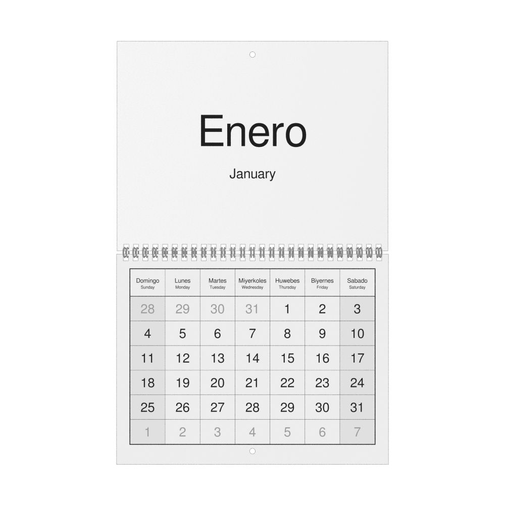 2026 Wall CalendarCentral Bikol/English-Labeled, Sunday-Start Layout, Wire-Bound, 11 x 8.5 in (27.9 x 21.6 cm)