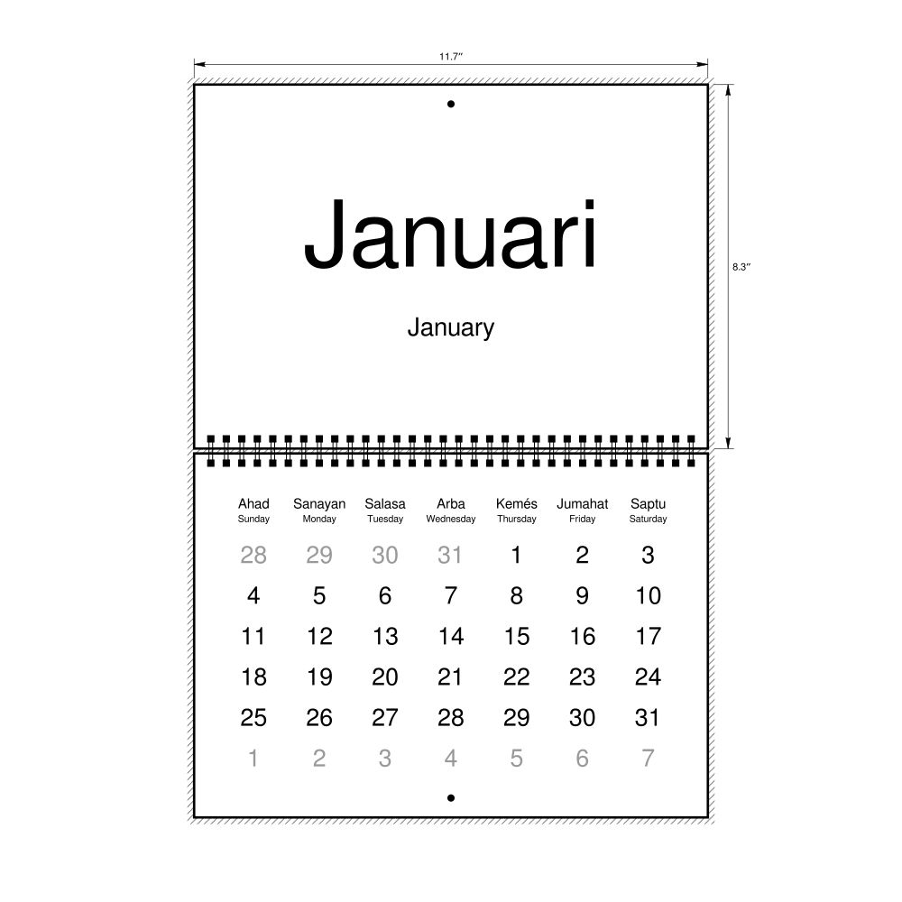 2026 Wall Calendar, Banjarese-Labeled, Monday-Start Layout, Wire-Bound, 11.7 x 8.3 in (29.7 x 21.0 cm)