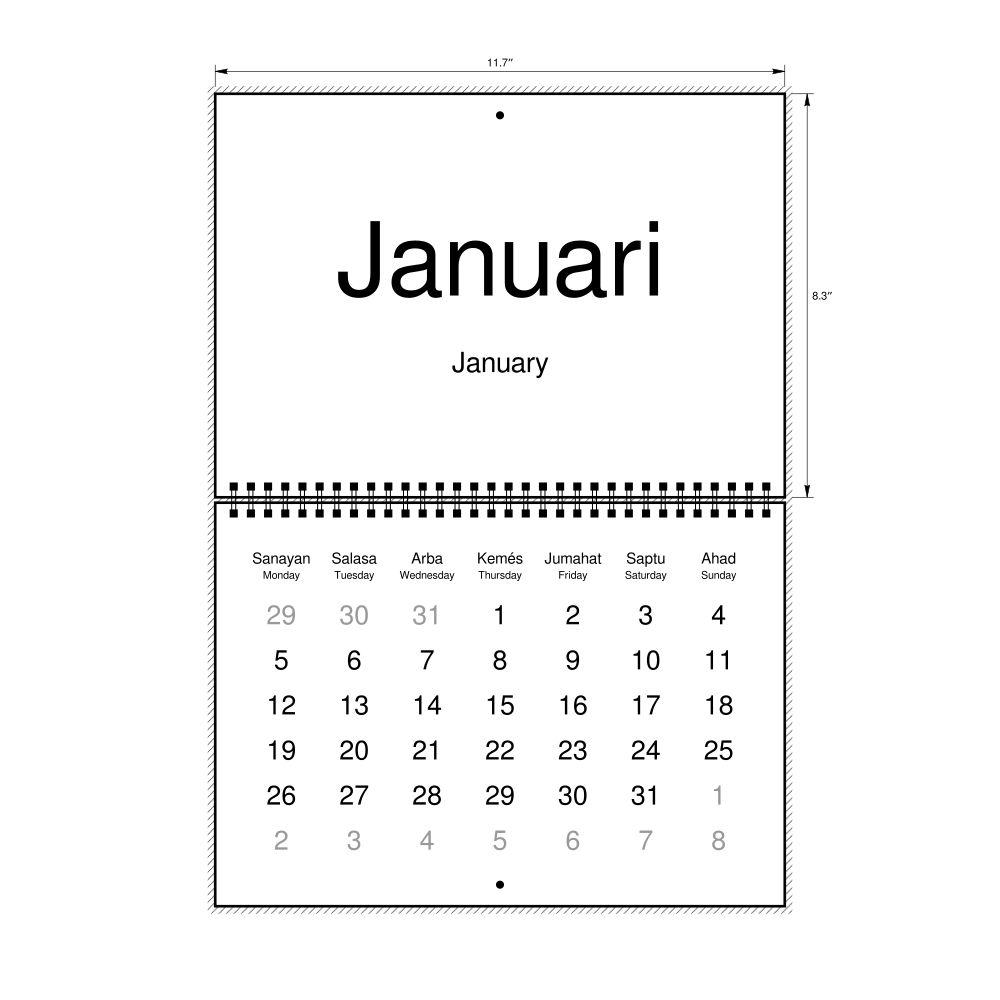 2027 Wall Calendar, Banjarese-Labeled, Monday-Start Layout, Wire-Bound, 11.7 x 8.3 in (29.7 x 21.0 cm)