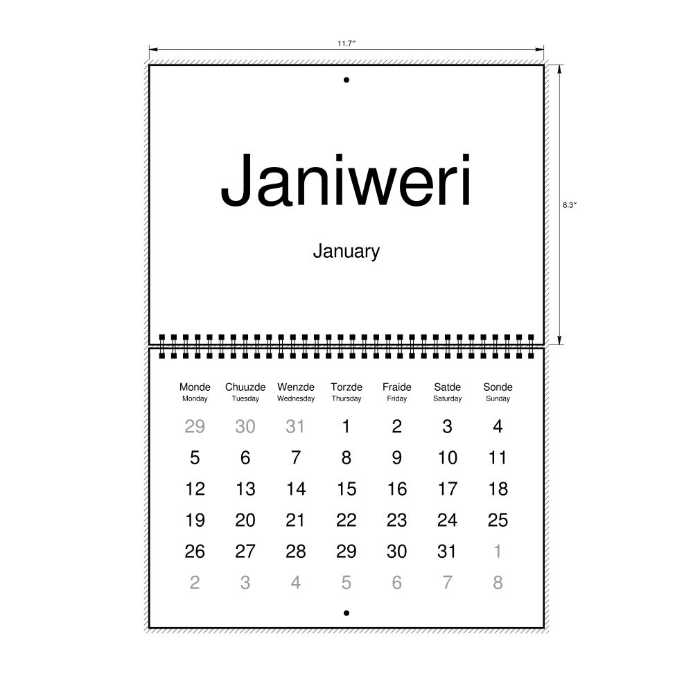 2027 Wall Calendar, Jamaican Patois-Labeled, Sunday-Start Layout, Wire-Bound, 11.7 x 8.3 in (29.7 x 21.0 cm)