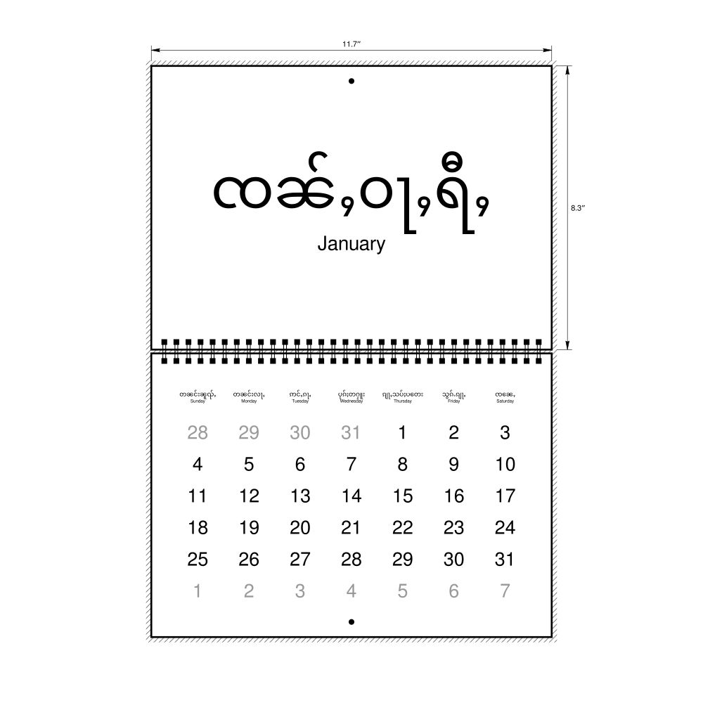 2026 Wall Calendar, Shan-Labeled, Monday-Start Layout, Wire-Bound, 11.7 x 8.3 in (29.7 x 21.0 cm)