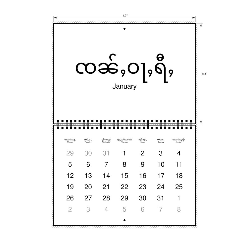 2026 Wall Calendar, Shan-Labeled, Sunday-Start Layout, Wire-Bound, 11.7 x 8.3 in (29.7 x 21.0 cm)