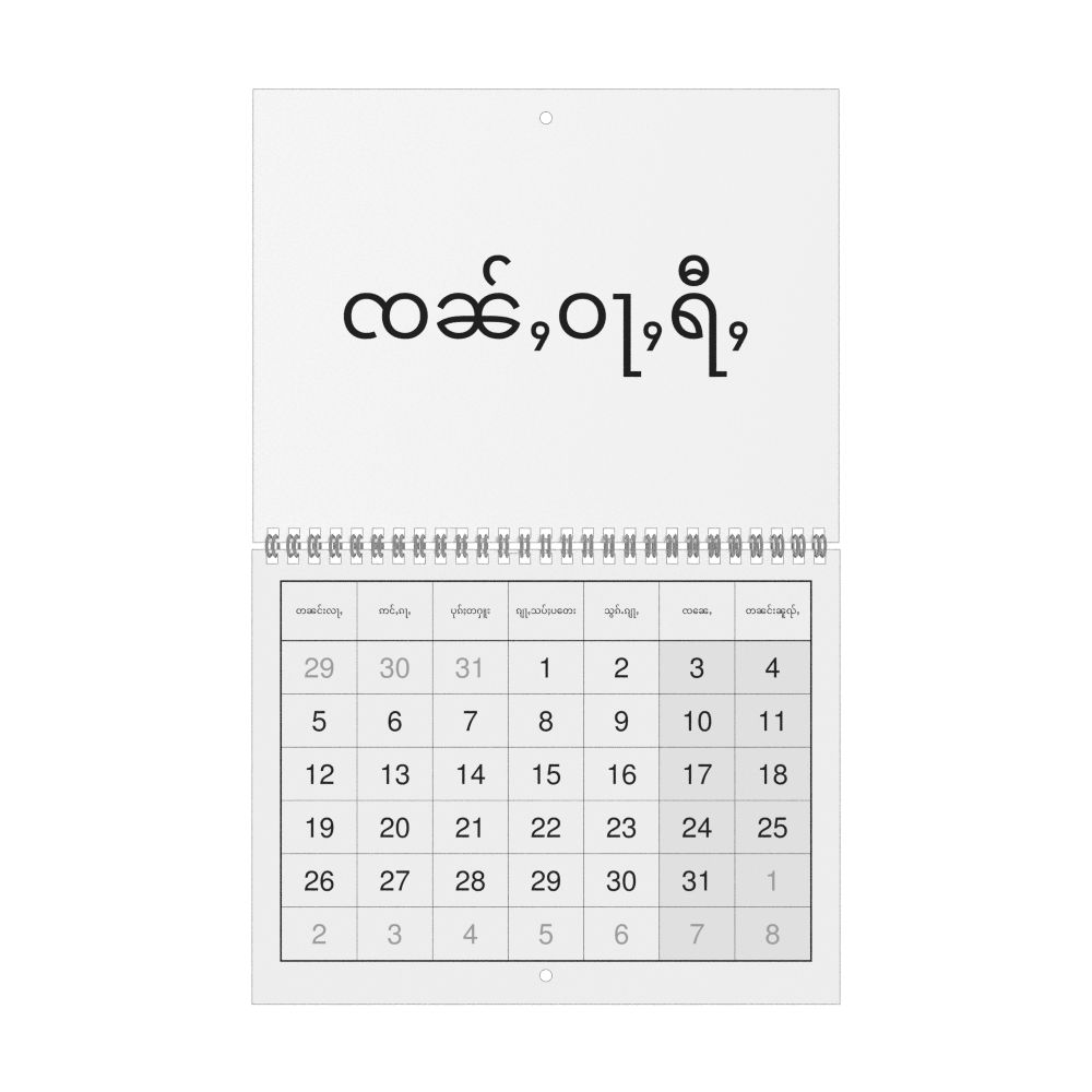 • Linguistics enthusiasts and polyglots - For "language geeks" interested in comparative linguistics or the mechanics of different languages and who value the aesthetic differences in scripts, orthography, and typography of different languages, the Shan calendar serves as an object of intellectual interest. You can collect calendars for various languages to compare their linguistic roots (e.g., comparing Romance languages vs. Slavic languages). Leskoff's calendars are characterized by specific typographic choices that highlight the orthography and script unique to the target language. Think correct usage of diacritics, characters, and directional writing (left-to-right vs. right-to-left). The minimalist design focuses on legibility and aesthetic appeal of the script itself.
