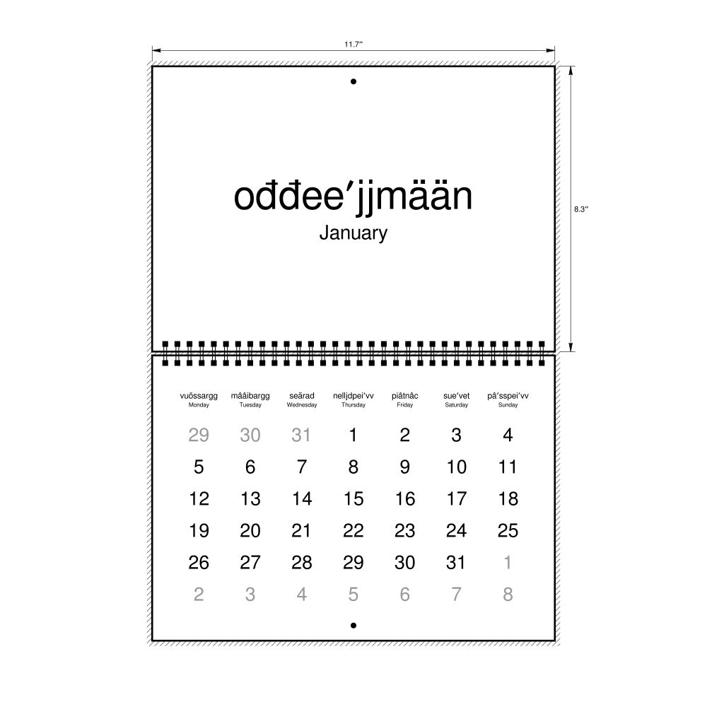 2027 Wall Calendar, Skolt Sámi-Labeled, Sunday-Start Layout, Wire-Bound, 11.7 x 8.3 in (29.7 x 21.0 cm)