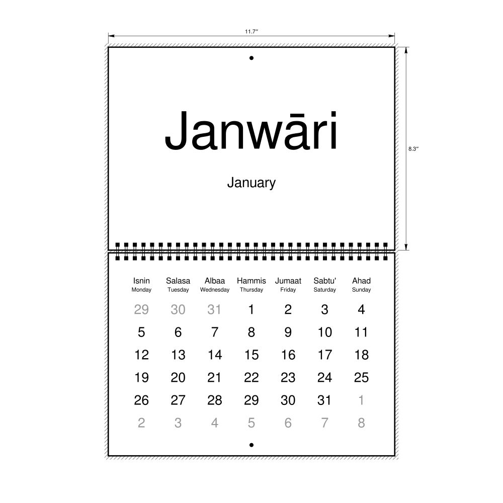2027 Wall Calendar, Tausug/English-Labeled, Sunday-Start Layout, Wire-Bound, 11.7 x 8.3 in (29.7 x 21.0 cm)