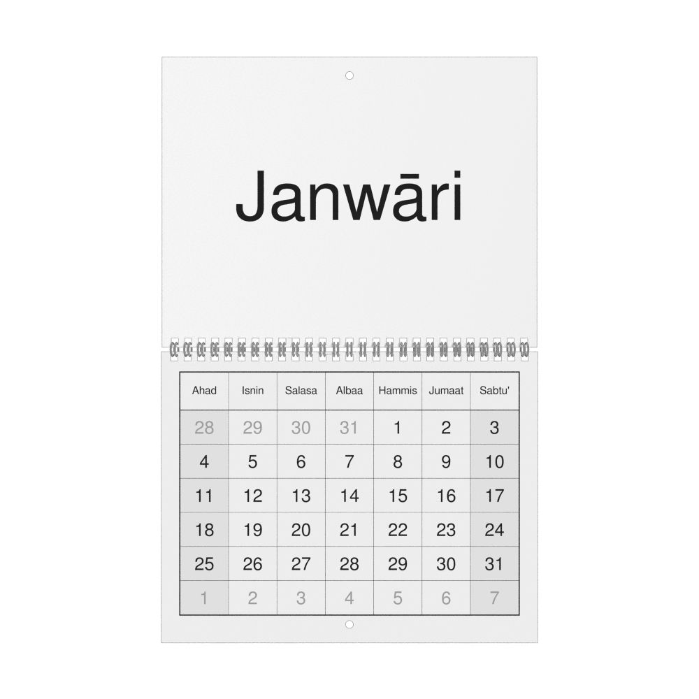 2026 Wall Calendar, Tausug-Labeled, Sunday-Start Layout, Wire-Bound, 11 x 8.5 in (27.9 x 21.6 cm)