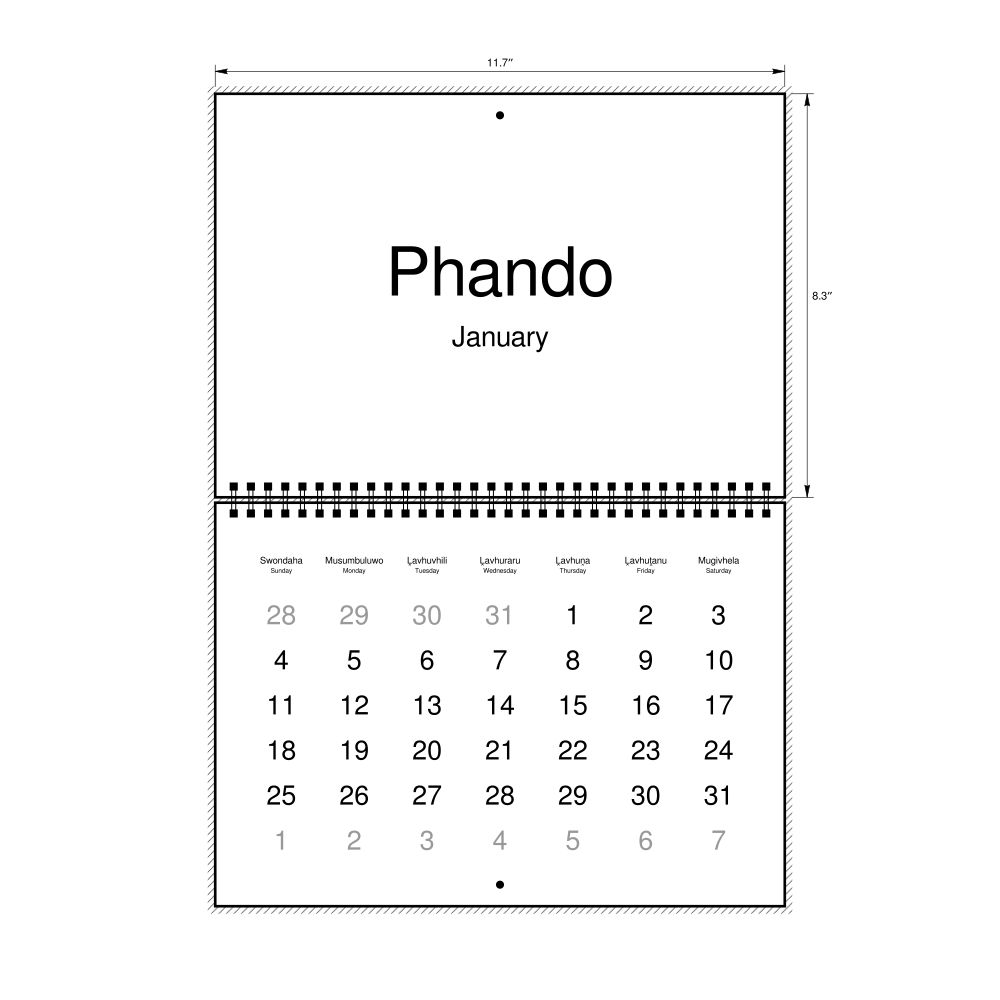 2027 Wall Calendar, Venda/English-Labeled, Sunday-Start Layout, Wire-Bound, 11.7 x 8.3 in (29.7 x 21.0 cm)
