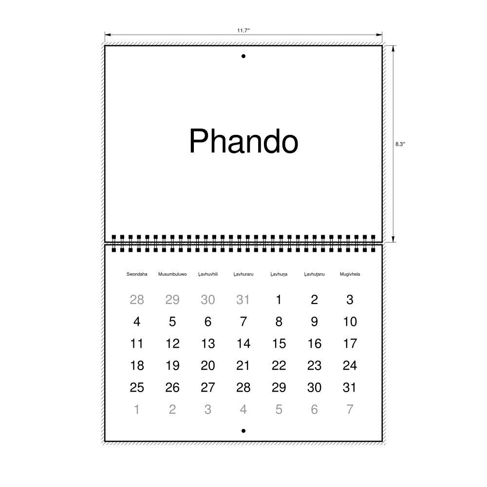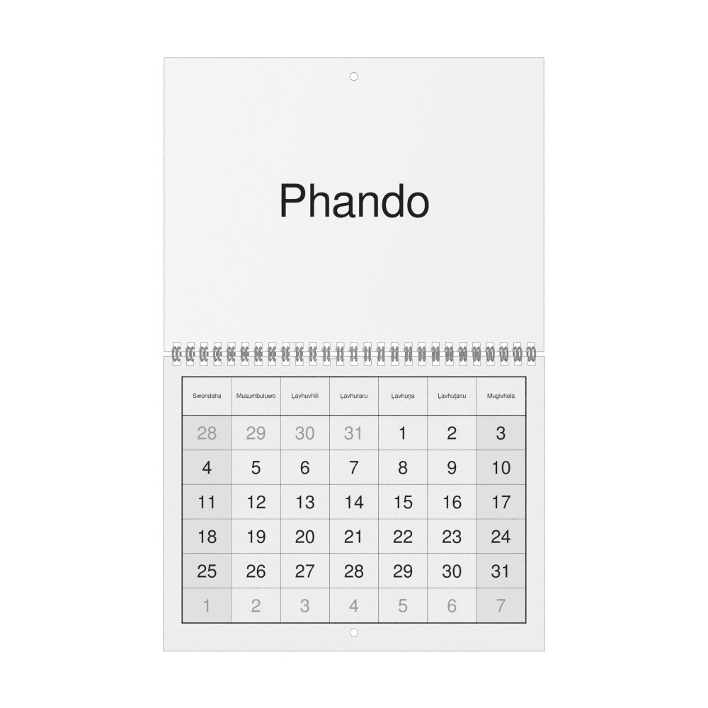 • Venda heritage speakers and cultural connectors - For individuals seeking to maintain a connection to their history, ancestral roots, or the culture associated with the Venda language, the calendar serves as a daily cultural marker. Use it in your home, office, library, or museum as a link to linguistic and cultural identity that integrates Venda into your everyday life. Familiar language script and naming conventions may also provide a sense of home in a foreign environment.