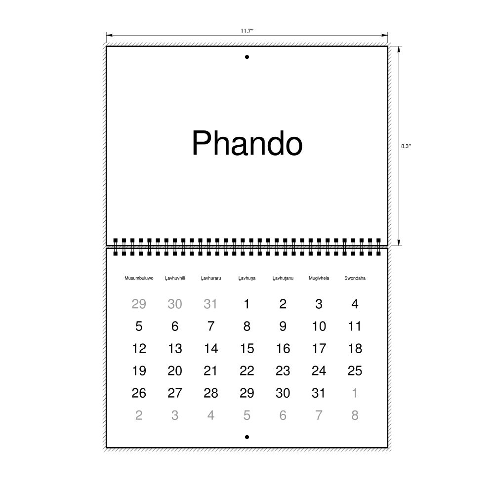 • Venda heritage speakers and cultural connectors - For individuals seeking to maintain a connection to their history, ancestral roots, or the culture associated with the Venda language, the calendar serves as a daily cultural marker. Use it in your home, office, library, or museum as a link to linguistic and cultural identity that integrates Venda into your everyday life. Familiar language script and naming conventions may also provide a sense of home in a foreign environment.