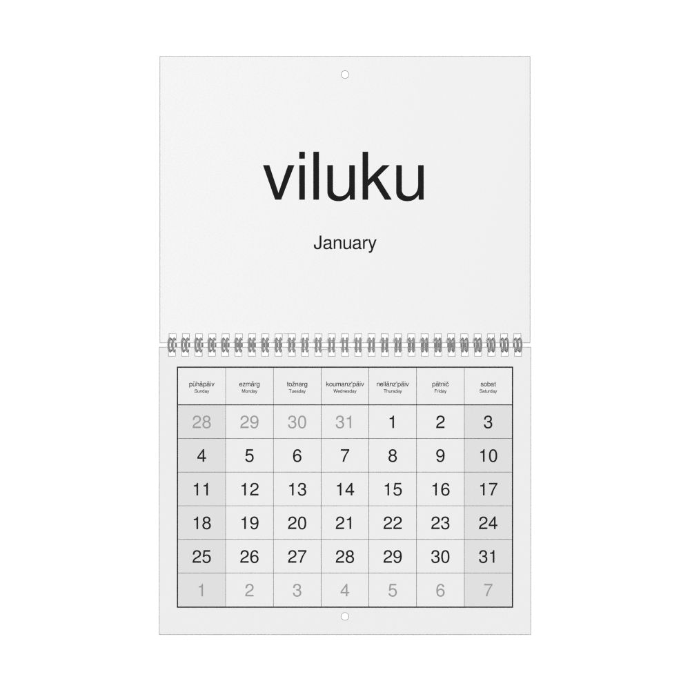 2026 Wall CalendarVeps/English-Labeled, Sunday-Start Layout, Wire-Bound, 11 x 8.5 in (27.9 x 21.6 cm)