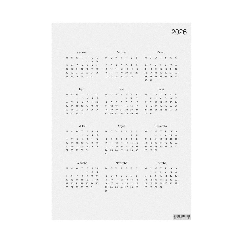 Leskoff 2026 Wall Calendar, Jamaican Patois-Labeled, Monday-Start Layout, Poster / Wall Print, 23.4 x 33.1 in (59.4 x 84.1 cm), image 1 of 2
