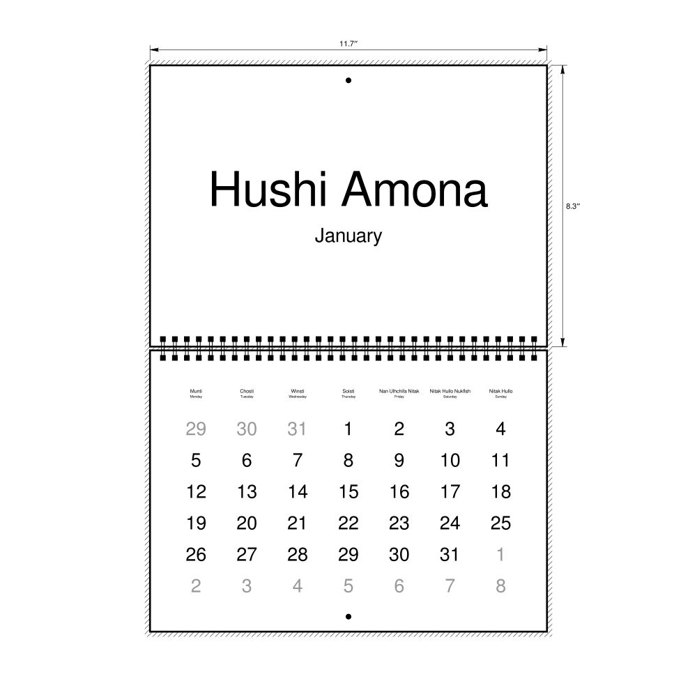 2027 Wall Calendar, Chickasaw/English-Labeled, Monday-Start Layout, Wire-Bound, 11.7 x 8.3 in (29.7 x 21.0 cm)