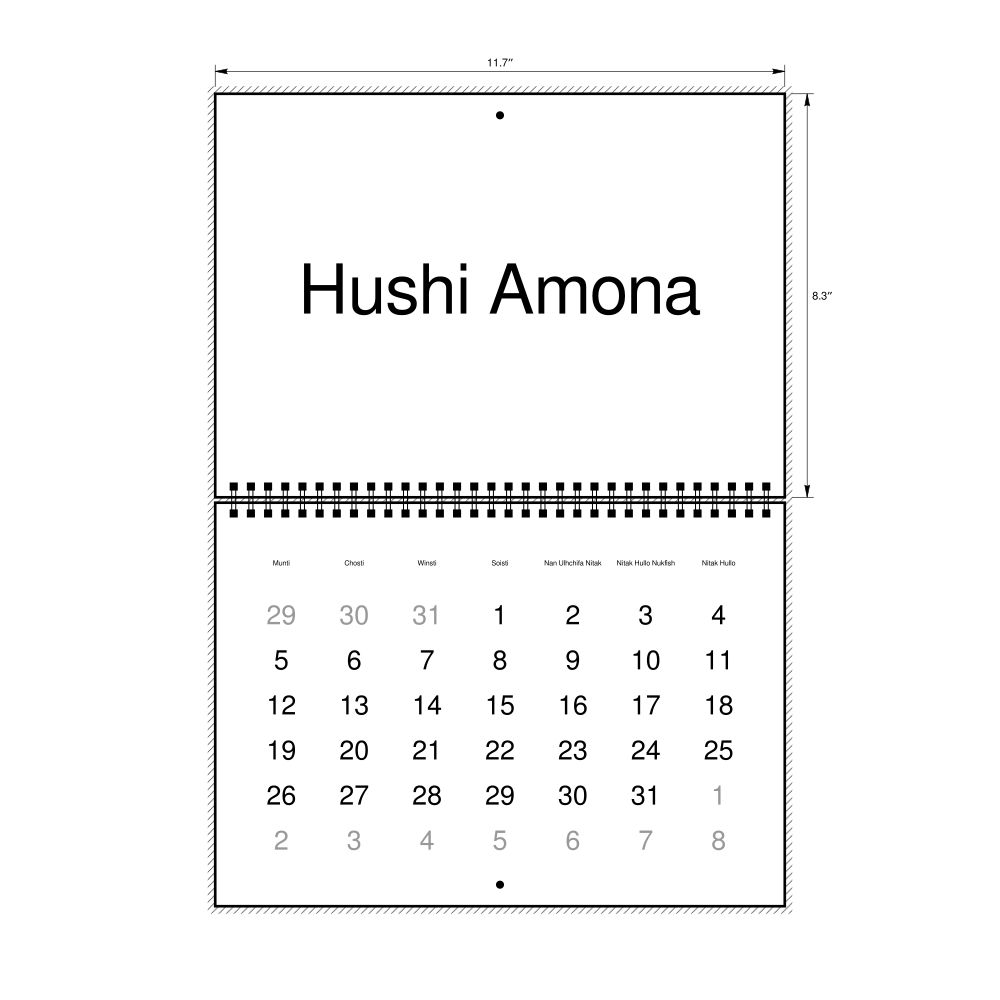 • Chickasaw heritage speakers and cultural connectors - For individuals seeking to maintain a connection to their history, ancestral roots, or the culture associated with the Chickasaw language, the calendar serves as a daily cultural marker. Use it in your home, office, library, or museum as a link to linguistic and cultural identity that integrates Chickasaw into your everyday life. Familiar language script and naming conventions may also provide a sense of home in a foreign environment.