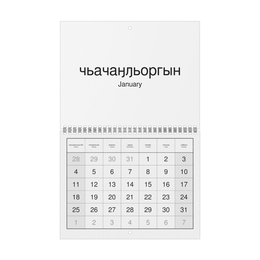 2026 Wall CalendarChukchi/English-Labeled, Sunday-Start Layout, Wire-Bound, 11 x 8.5 in (27.9 x 21.6 cm)