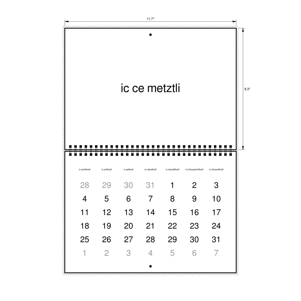 • Polyglots and autodidacts - For "language geeks" interested in the origins of different languages, classical literature, and scholarly pursuits and who value the typographic and aesthetic details of historical languages, the Classical Nahuatl calendar serves as an object of intellectual interest. You can collect calendars for various languages to compare their linguistic roots. The minimalist design focuses on legibility and aesthetic appeal of the historic and reconstructed words themselves.