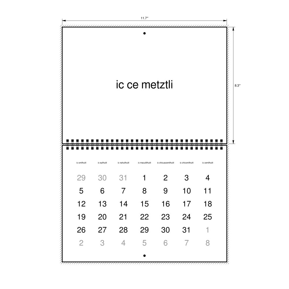• Polyglots and autodidacts - For "language geeks" interested in the origins of different languages, classical literature, and scholarly pursuits and who value the typographic and aesthetic details of historical languages, the Classical Nahuatl calendar serves as an object of intellectual interest. You can collect calendars for various languages to compare their linguistic roots. The minimalist design focuses on legibility and aesthetic appeal of the historic and reconstructed words themselves.