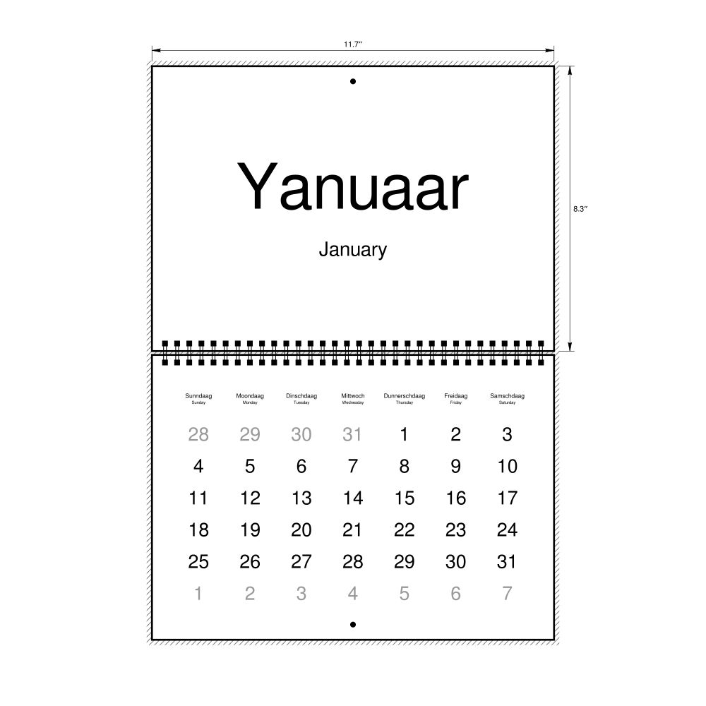 2026 Wall CalendarPennsylvania Dutch/English-Labeled, Sunday-Start Layout, Wire-Bound, 11.7 x 8.3 in (29.7 x 21.0 cm)