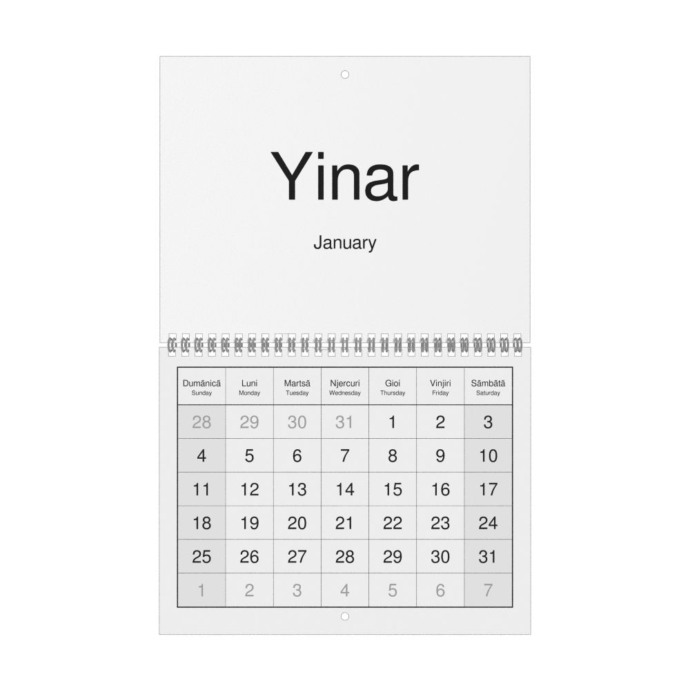 2026 Wall CalendarAromanian/English-Labeled, Sunday-Start Layout, Wire-Bound, 11 x 8.5 in (27.9 x 21.6 cm)