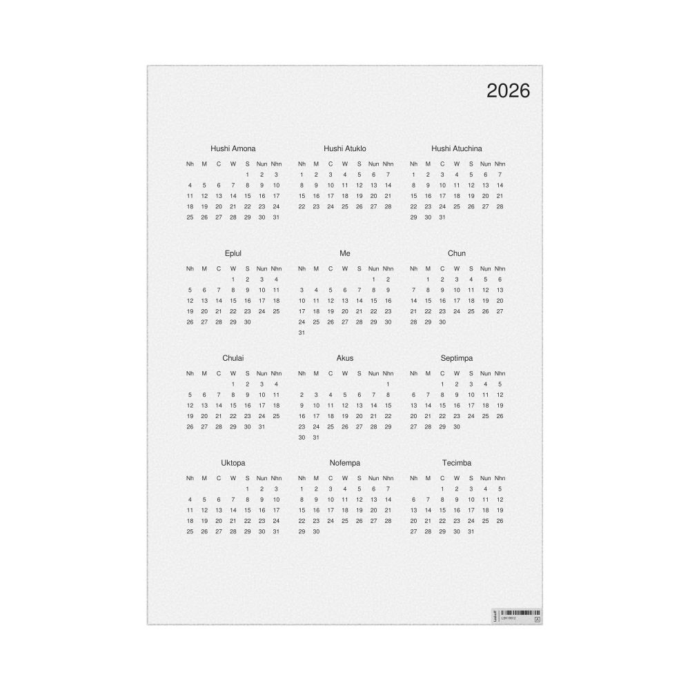 • Linguistics enthusiasts and polyglots - For "language geeks" interested in comparative linguistics or the mechanics of different languages and who value the aesthetic differences in scripts, orthography, and typography of different languages, the Chickasaw calendar serves as an object of intellectual interest. You can collect calendars for various languages to compare their linguistic roots (e.g., comparing Romance languages vs. Slavic languages). Leskoff's calendars are characterized by specific typographic choices that highlight the orthography and script unique to the target language. Think correct usage of diacritics, characters, and directional writing (left-to-right vs. right-to-left). The minimalist design focuses on legibility and aesthetic appeal of the script itself.