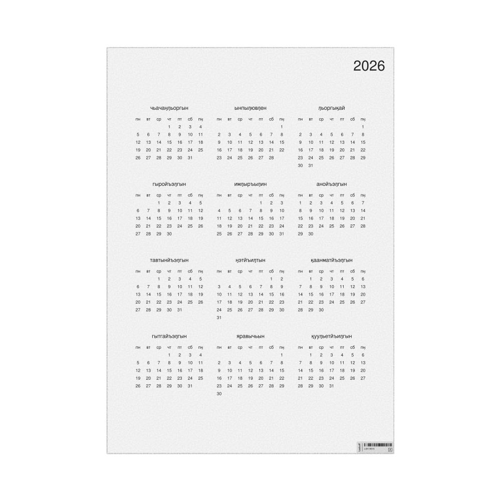 A 2026 wall calendar in Chukchi. The calendar uses the Monday-start week format (common in the UK and Europe).