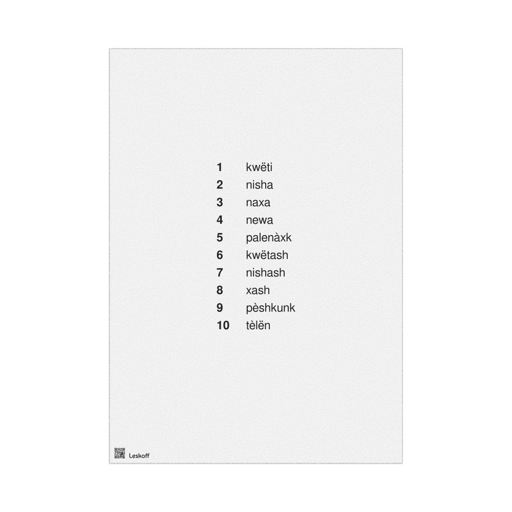 A poster of the numbers 1–10 in Unami.