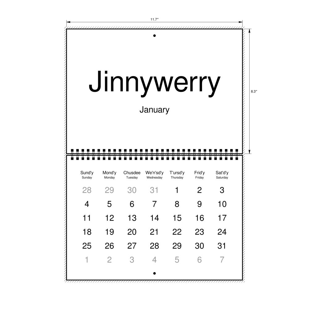 2027 Wall Calendar, Gullah/English-Labeled, Monday-Start Layout, Wire-Bound, 11.7 x 8.3 in (29.7 x 21.0 cm)