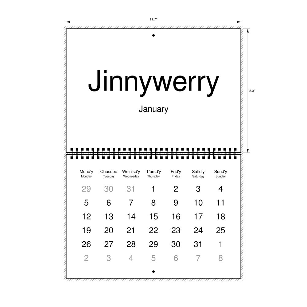 2026 Wall Calendar, Gullah/English-Labeled, Sunday-Start Layout, Wire-Bound, 11.7 x 8.3 in (29.7 x 21.0 cm)