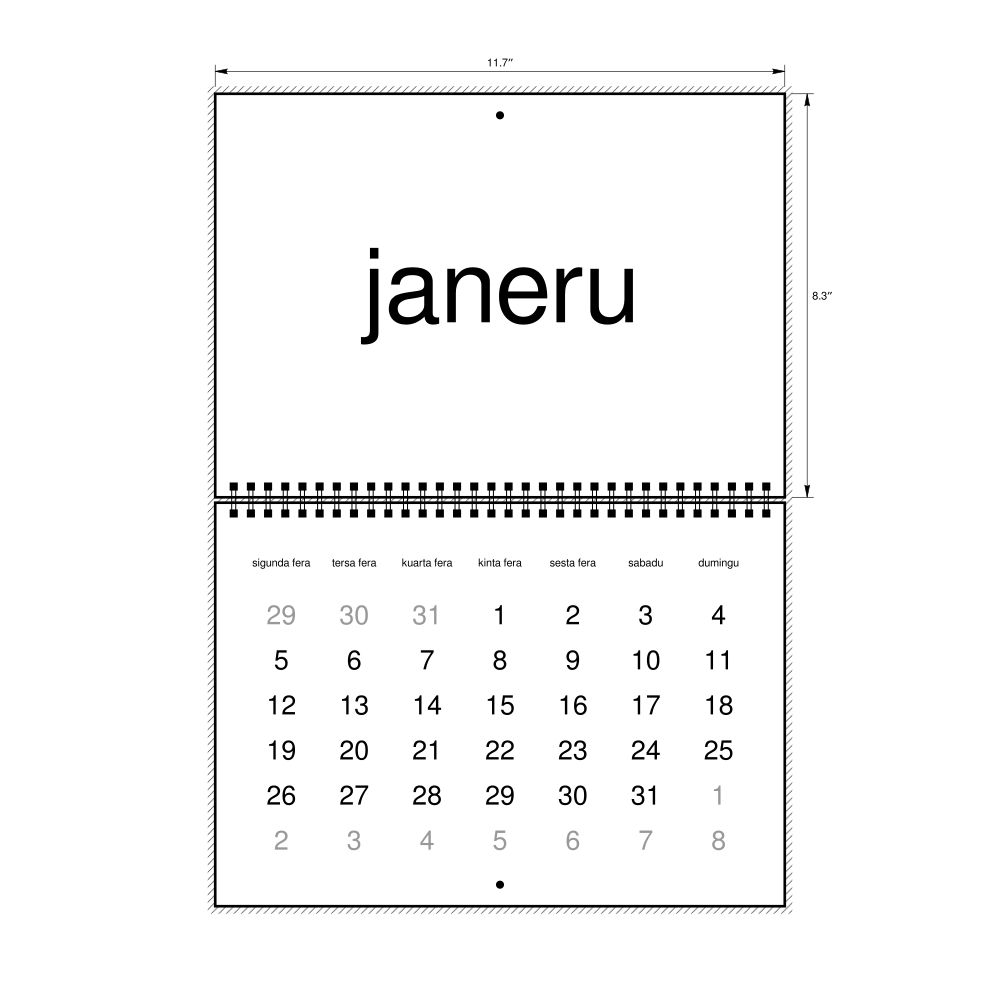 This calendar features the Cape Verdean Creole names of months and days of the week on top of a standard Gregorian calendar layout. Beyond its utility for tracking dates, it serves as an educational tool, cultural touchstone (cultural artifact), and functional decor (aesthetic object).