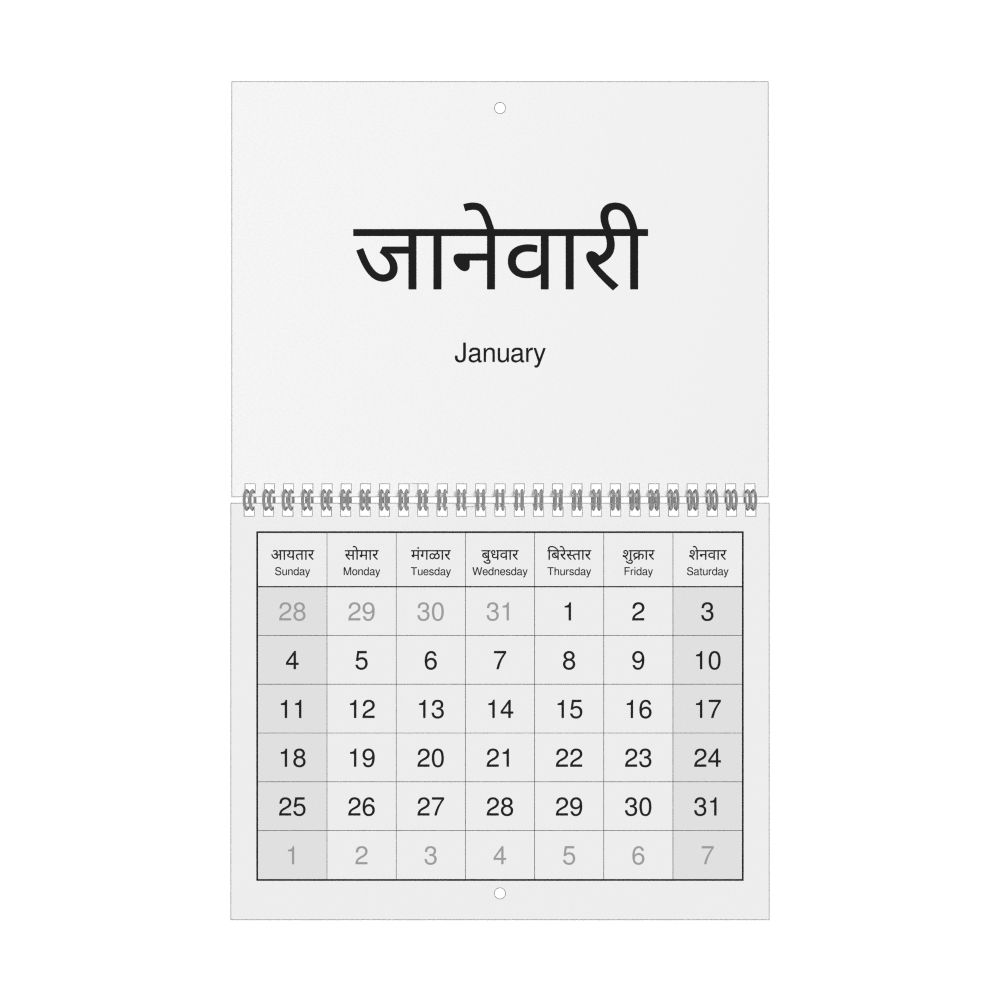 2026 Wall CalendarKonkani/English-Labeled, Sunday-Start Layout, Wire-Bound, 11 x 8.5 in (27.9 x 21.6 cm)