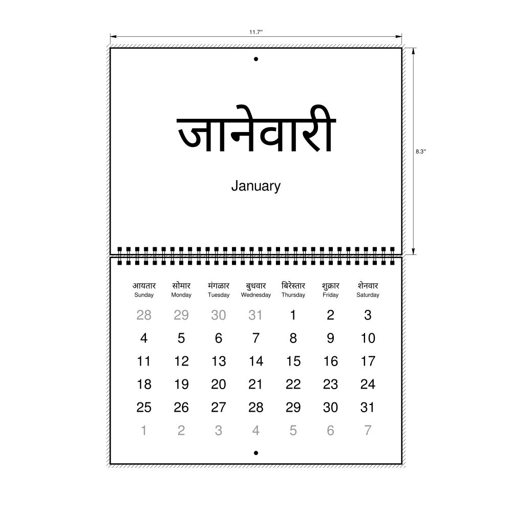 2026 Wall CalendarKonkani/English-Labeled, Sunday-Start Layout, Wire-Bound, 11.7 x 8.3 in (29.7 x 21.0 cm)