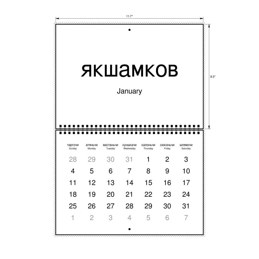 2027 Wall Calendar, Erzya-Labeled, Monday-Start Layout, Wire-Bound, 11.7 x 8.3 in (29.7 x 21.0 cm)