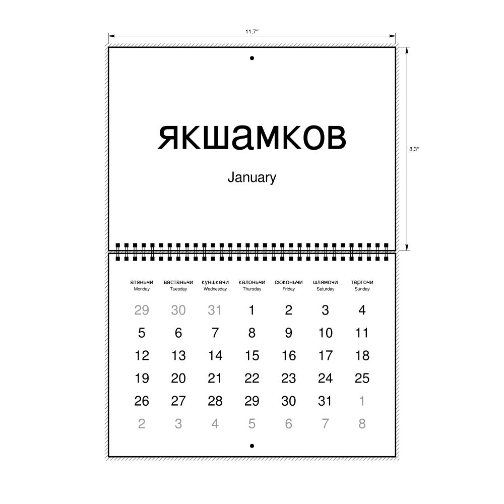 2027 Wall Calendar, Erzya/English-Labeled, Monday-Start Layout, Wire-Bound, 11.7 x 8.3 in (29.7 x 21.0 cm)