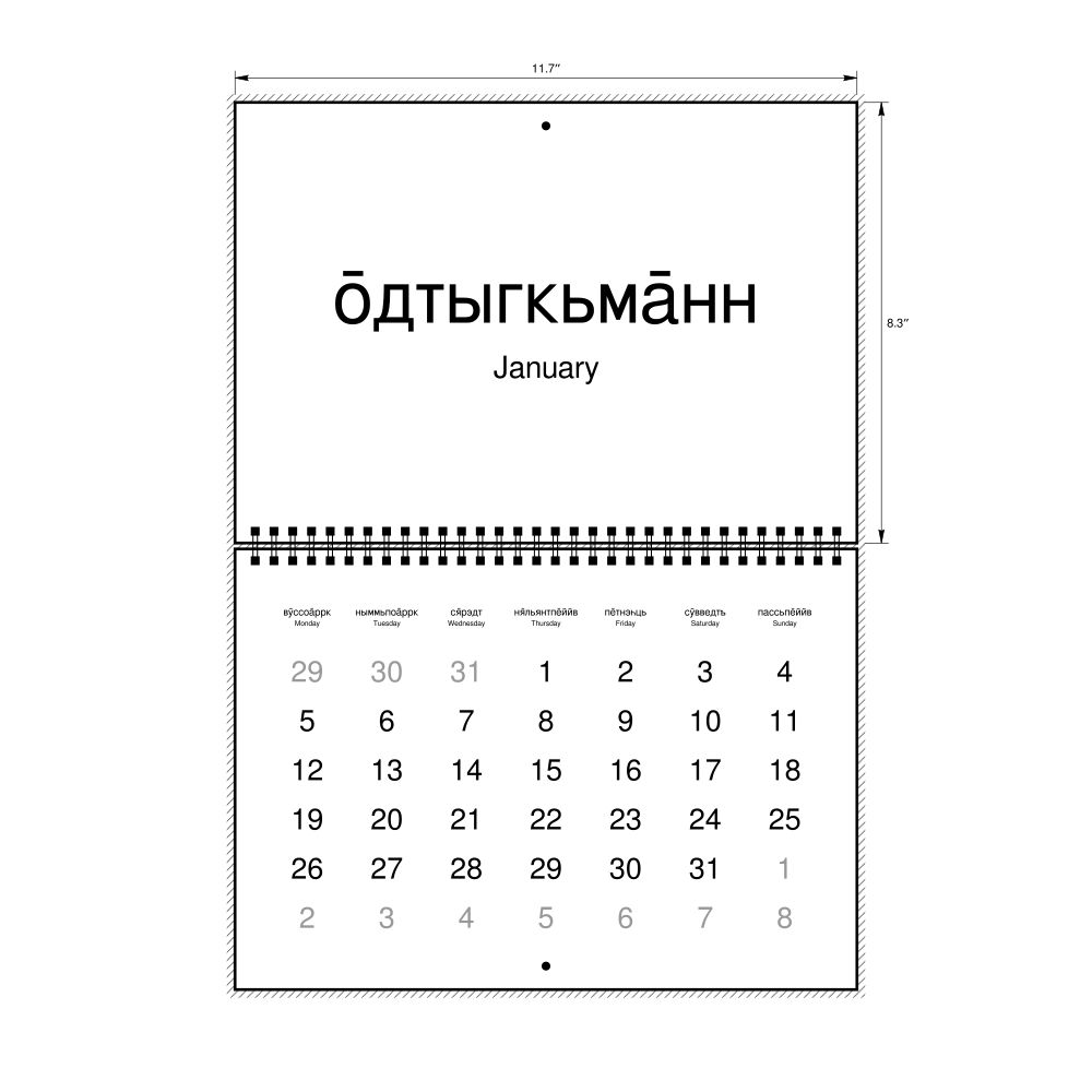 2026 Wall CalendarKildin Sámi/English-Labeled, Monday-Start Layout, Wire-Bound, 11.7 x 8.3 in (29.7 x 21.0 cm)