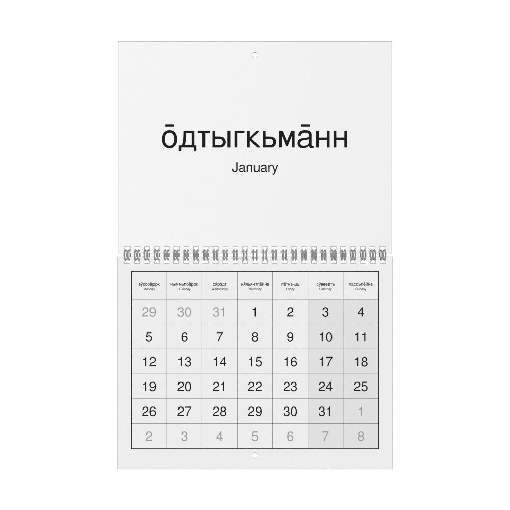 2026 Wall CalendarKildin Sámi/English-Labeled, Monday-Start Layout, Wire-Bound, 11 x 8.5 in (27.9 x 21.6 cm)