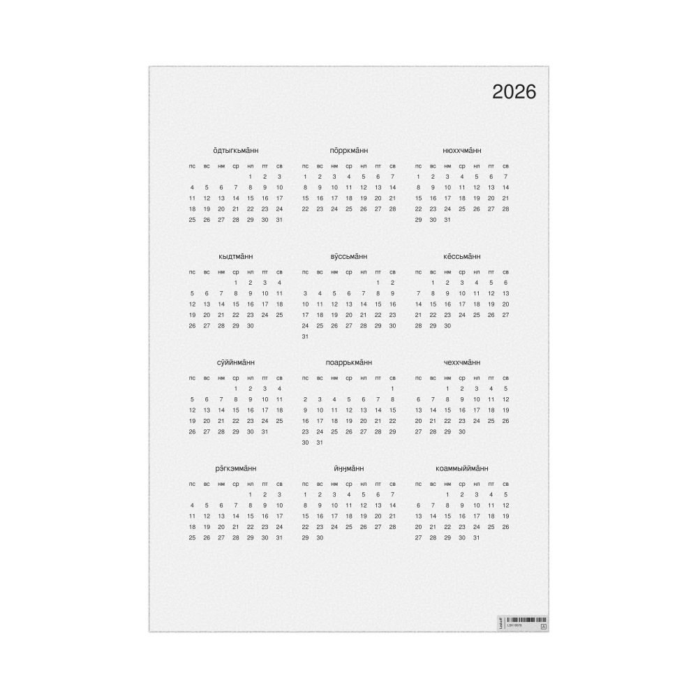 Leskoff 2026 Wall Calendar, Kildin Sámi-Labeled, Sunday-Start Layout, Poster / Wall Print, 23.4 x 33.1 in (59.4 x 84.1 cm), image 2 of 2