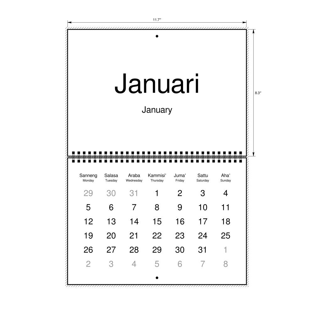 2027 Wall Calendar, Makassarese-Labeled, Sunday-Start Layout, Wire-Bound, 11.7 x 8.3 in (29.7 x 21.0 cm)