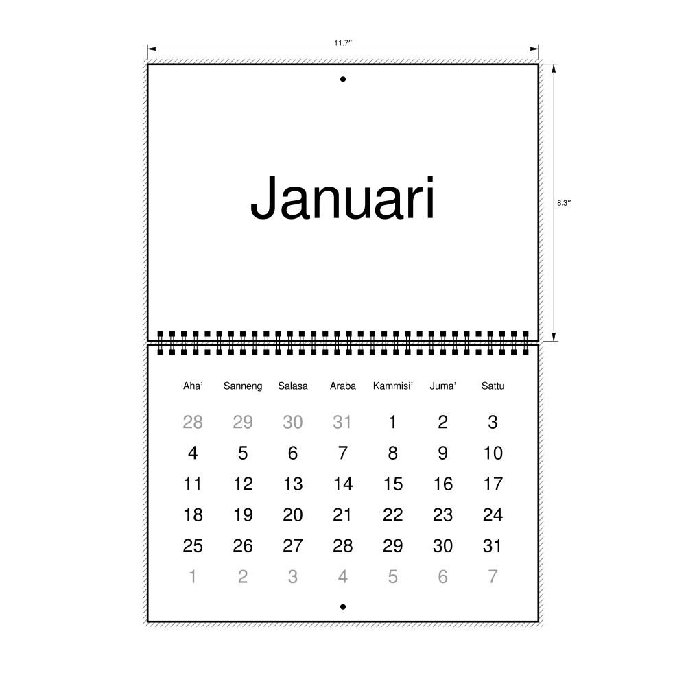 2026 Wall Calendar, Makassarese-Labeled, Sunday-Start Layout, Wire-Bound, 11.7 x 8.3 in (29.7 x 21.0 cm)