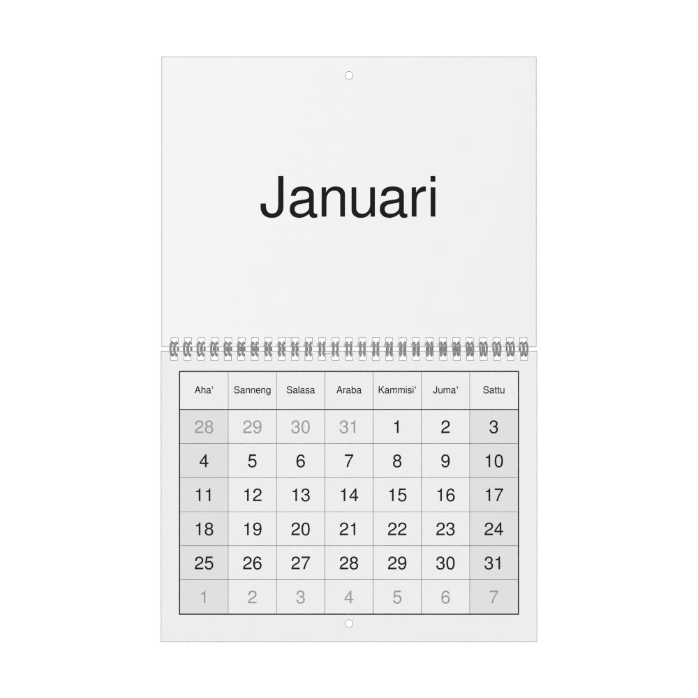 2026 Wall Calendar, Makassarese-Labeled, Sunday-Start Layout, Wire-Bound, 11 x 8.5 in (27.9 x 21.6 cm)