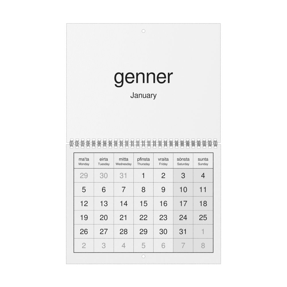 2026 Wall Calendar, Mòcheno-Labeled, Monday-Start Layout, Wire-Bound, 11 x 8.5 in (27.9 x 21.6 cm)